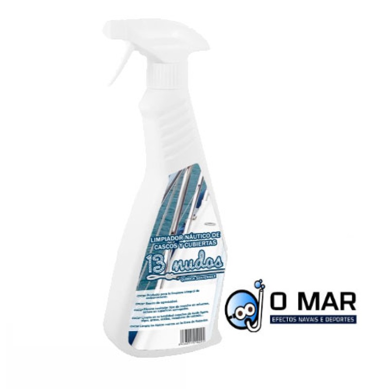 13 NUDOS es un limpiador náutico formulado para la limpieza integral de cascos y cubiertas. Limpia de forma eficaz manchas de algas, aceites, rozaduras, etc