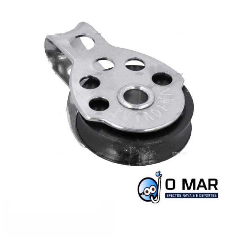 Polea simple con roldana de 17mm fabricada en acero inoxidable.
