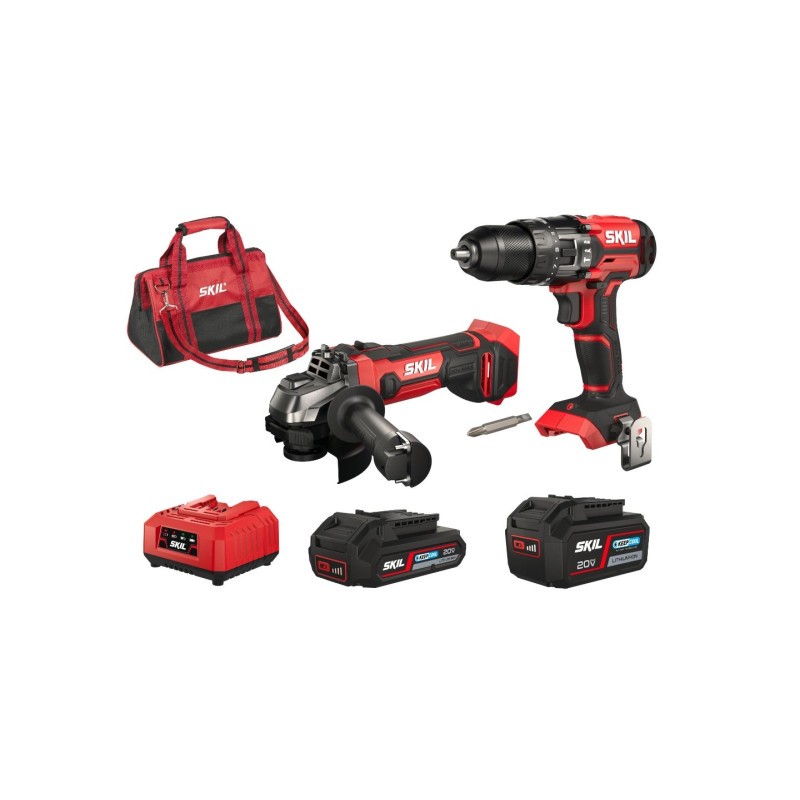 KIT Skil: taladro percutor y amoladora - 2 Baterías 2,0 & 4,0Ah-Cargador-2.4A + Bolsa transporte