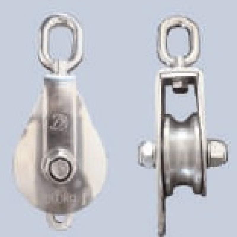 Roldada inox. con polea de 100Ømm. y un largo total con arraigo de 270mm.