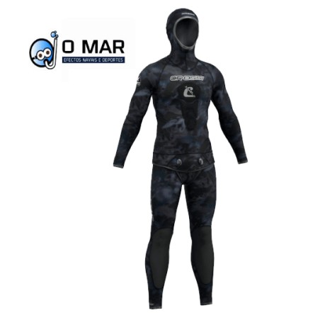 Traje completo con camuflaje exclusivo "Cryptic Technology" basado en la imagen real de un pez, en este caso en concreto, un rape con sus colores dominantes; creando así, un camuflaje muy parecido al original y luego modificarlo para crear un efecto único e irrepetible.