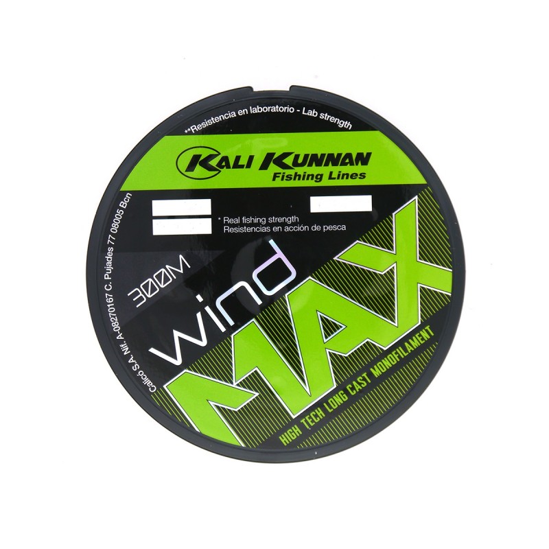KALI KUNNAN WIND MAX 300 M es de color amarillo de alta visibilidad, por lo que se hace ideal para la pesca del calamar. Tiene gran resistencia a la abrasión, baja memoria y gran resistencia a la tracción. Se sirve en bobina de 300 m.