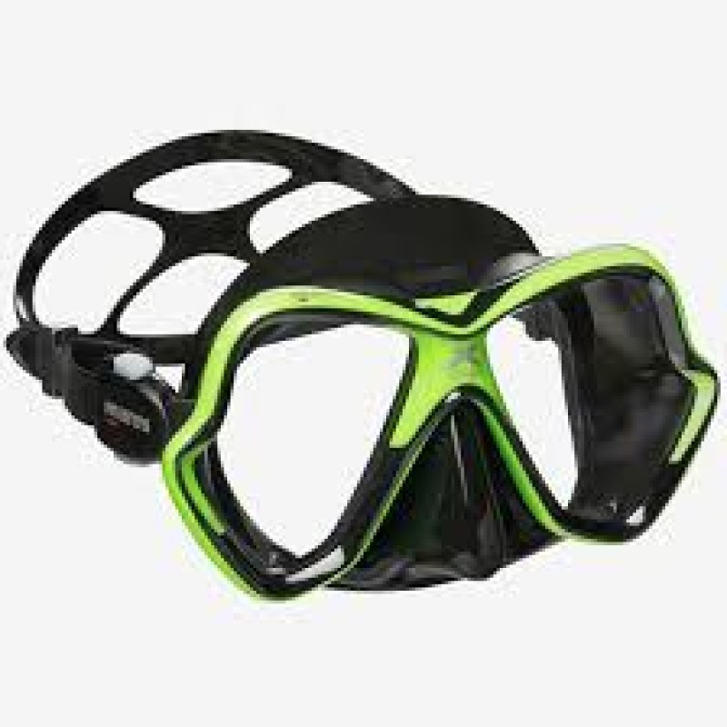 La zona nasal de la máscara cuenta con pequeñas costillas que alivian la presión y brindan mayor comodidad durante largas inmersiones. La correa en forma de "X", fabricada en silicona, asegura un ajuste seguro y cómodo, incluso cuando se llevan guantes gruesos. Las hebillas laterales permiten un ajuste rápido y sencillo de la correa, lo que facilita su adaptación a diferentes tamaños de cabeza.