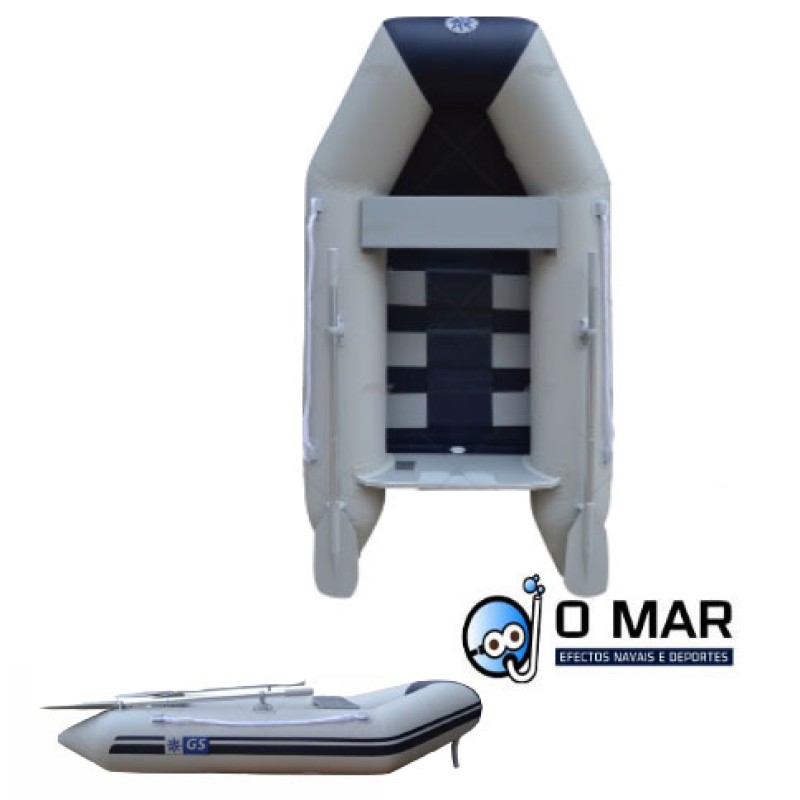 Neumática GS MARINE modelo 200 SL fabricada en PVC 1100 DECITEX de color gris y azul. Dispone de suelo laminado, con espacio para 1 + 1 personas y una carga máxima de 220 kg. Cumple con la normativa ISO 6185-1.