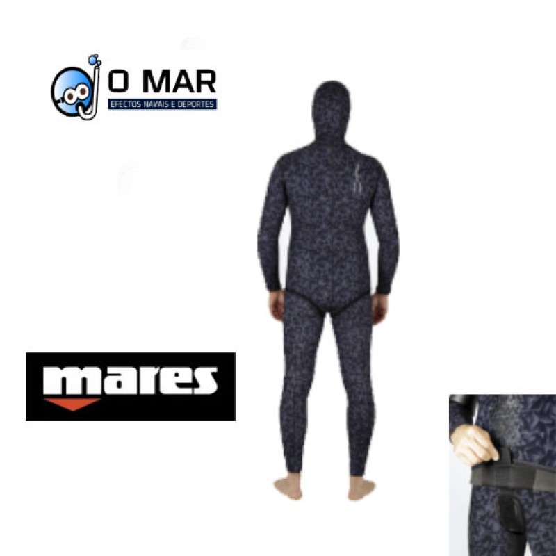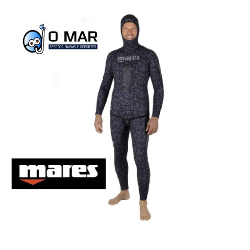 • Un diseño de camuflaje poligonal negro con paneles índigo para hacer que el perfil de un pescador submarino sea «invisible»
