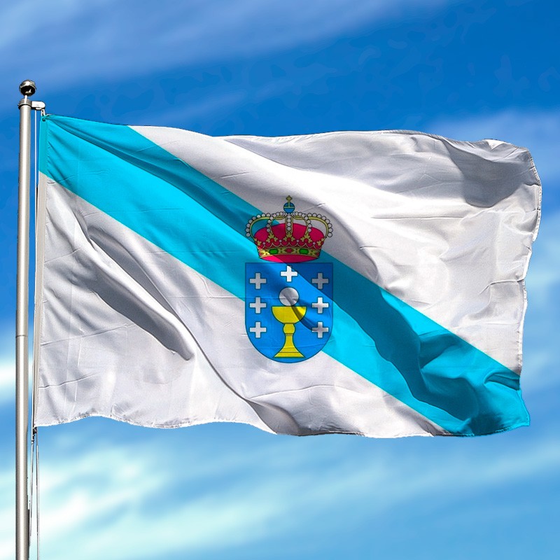 Bandera Gallega 20x30 con escudo, fabricada en tejido de calidad para exteriores